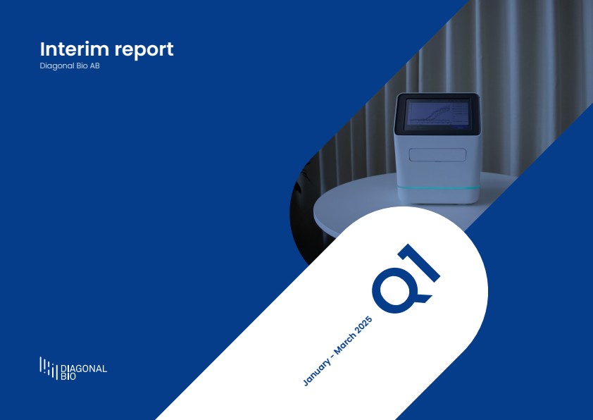 Diagonal Bio AB (publ) (“Diagonal Bio” or “the Company”) hereby publishes its interim report for the first quarter of 2025. Below is a brief summary. The full report is available on Diagonal Bio’s website (www.diagonalbio.com) and as an attached file.